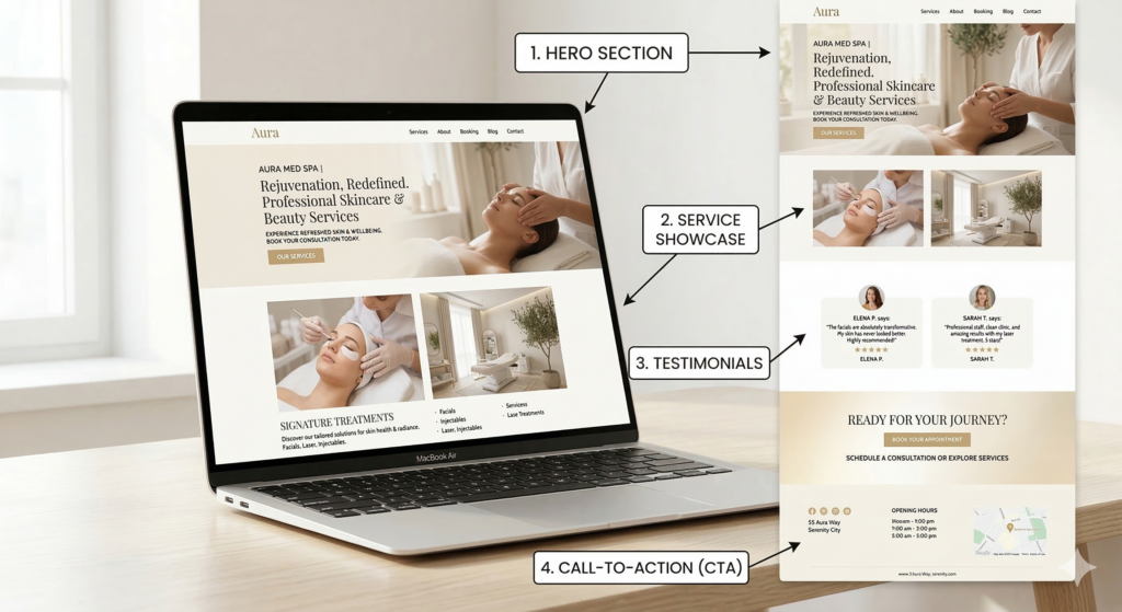A beautiful website is important, but the real goal is creating a website that guides visitors through a clear journey from discovering your business to confidently booking an appointment.